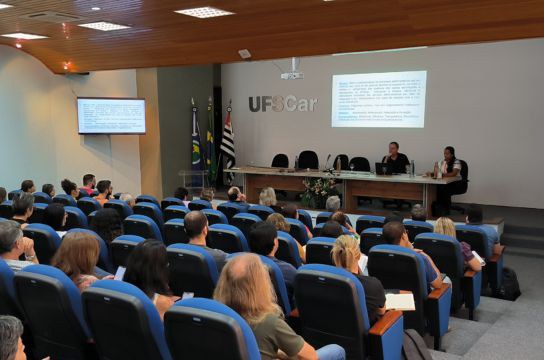 O cenário orçamentário do período da gestão atual também foi destaque, com explicação ano a ano, de 2012 a 2023, até a construção de um novo modelo orçamentário para a UFSCar, que consiste no levantamento, planejamento e replanejamento, controle e execução orçamentária. Os sistemas do Governo Federal utilizados pela Coordenadoria de Orçamento, e a origem dos recursos da Universidade também foram explicados ao público em detalhe.